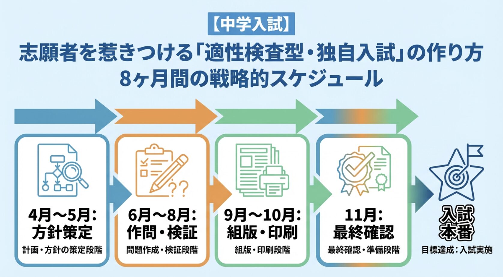 【中学入試】志願者を惹きつける「適性検査型・独自入試」の作り方。8ヶ月間の戦略的スケジュール
